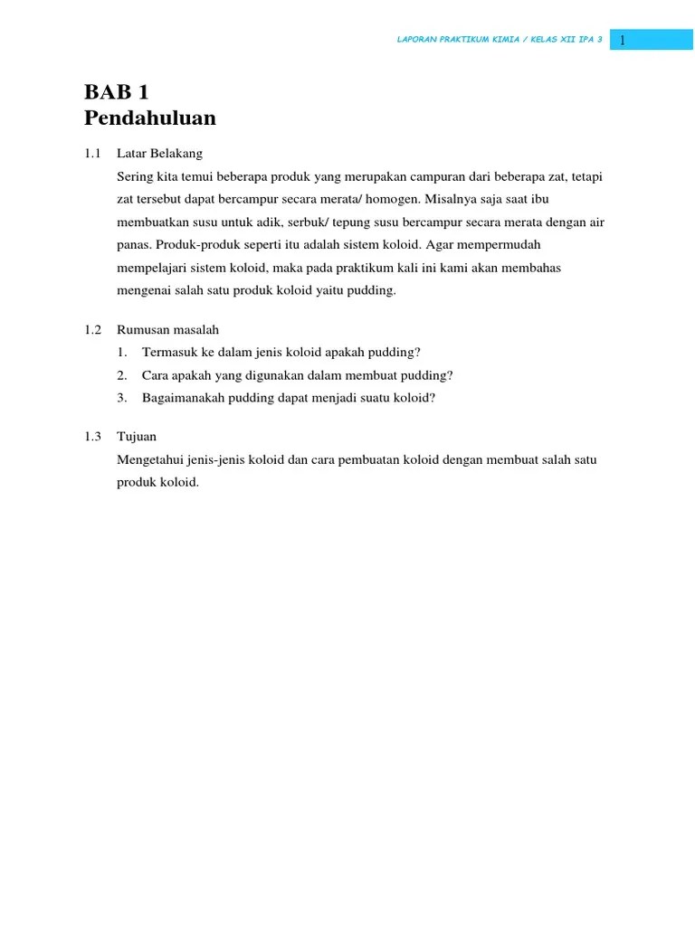 Jika anda ingin membuat latar belakang laporan prakerin sangat saya sarankan juga untuk mengikuti gaya penulisan seperti diatas kegiatan prakerin merupakan salah satu bentuk kegiatan dari sekian banyak visi. Campuran di dalam sebuah fase terdispersi itu dengan media pendispersi di dalam koloid tampak homogen. 29 full pdfs related to this paper. A short summary of this paper. Ii (dua) telah diperiksa oleh asisten/koordinator asisten dan dinyatakan diterima.